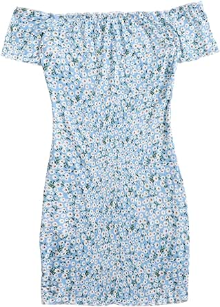 Shein Women S Off The Shoulder Floral Short Sleeve Lettuce Trim Bodycon Dress At Amazon Women S Clothing Store
